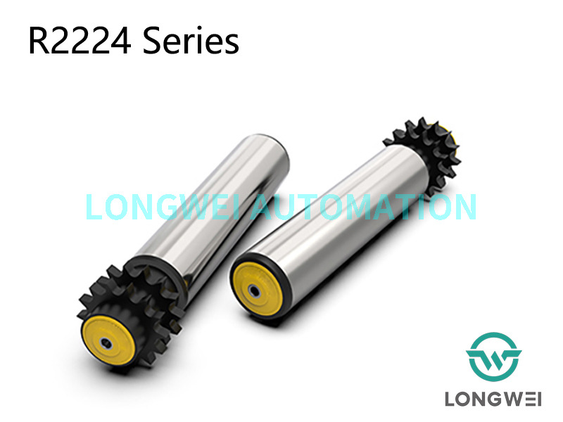 R2224 series double-row polymer sprocket conveyor roller is for internal unit handling conveying systems, mainly applied in medium load roller conveyors to transport cases, carboards, containers, barrels or tires.